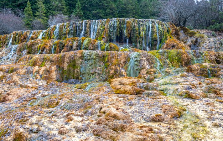 Home > Turismo > LA VALLE TIBETANA DI HUANGLONG: QUANDO LA NATURA DIVENTA SPETTACOLO > Beautiful Multicolored Marvelous Flying Waterfall at Huanglong Scenic and Historic Interest Area in the Minshan Mountains at the Edge of the Tibetan Himalayan Plateauin in Songpan County, Sichuan Province, China Asia